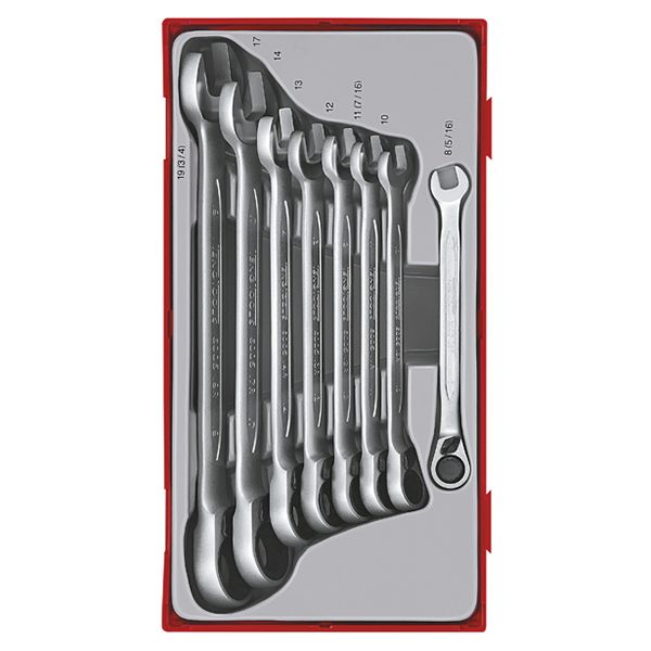 TENG 8PCE REVERSIBLE RATCHET COMBINATION SPANNER SET 8-19MM - TC-TRAY