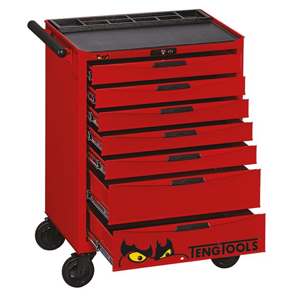 TENG 26" PRO ROLL CABINET, 7 DRAWERS, RED
