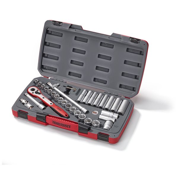 TENG 34PCE 1/2" DR. METRIC REG/DEEP SOCKET SET 6PNT
