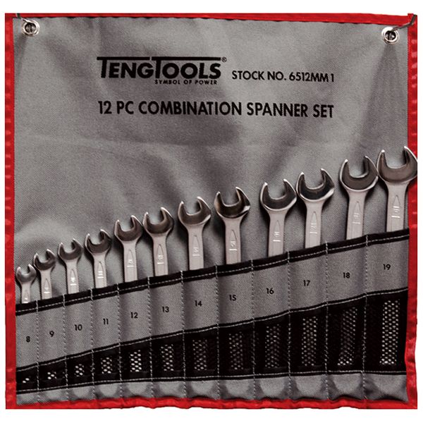 TENG COMBINATION SPANNER SET W/WALLET, METRIC, 12PCE, 8MM-19MM