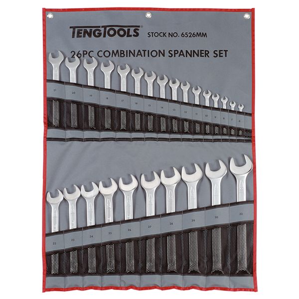 TENG COMBINATION SPANNER SET W/WALLET, METRIC, 26PCE, 6-32MM