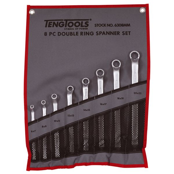 TENG DOUBLE OFF-SET RING SPANNER SET, 8PCE, 6MM-22MM