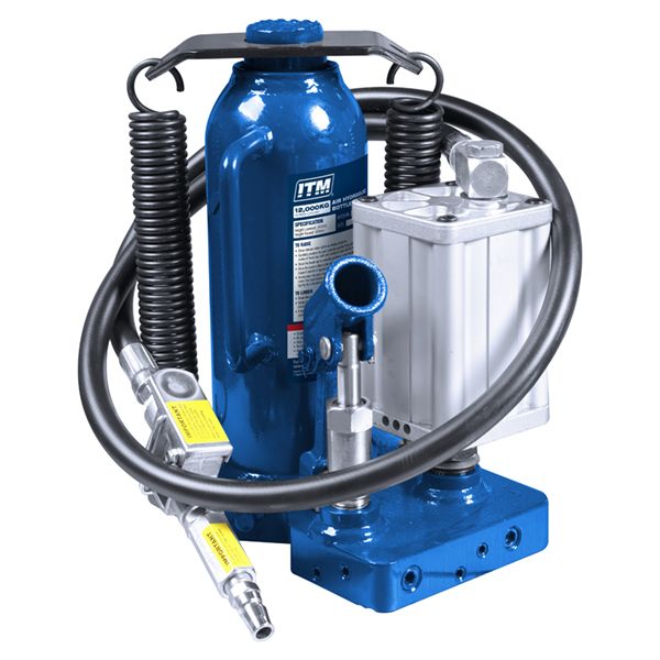 ITM Air/Hydraulic bottle jacks are specifically designed for commercial use and can be operated either manually or pneumatically and comply with the Australian Mandatory Standard AS/NZS 2693:2007. A high quality aluminium air pump allows fast and efficient lift when in the workshop, the manual function allows for normal operation anywhere when air supply is not available making them perfect for onsite/offsite lifting of heavy duty machinery, farm equipment and industrial construction equipment.