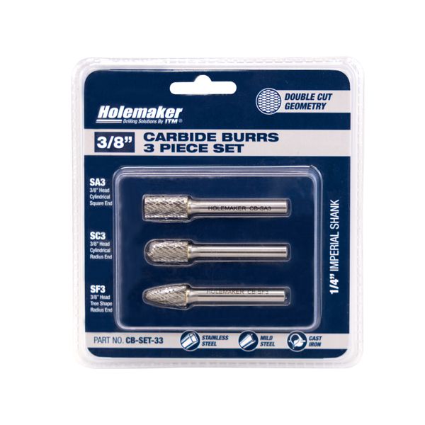 HOLEMAKER CARBIDE BURR SET, BLISTER PACK, 3PCE SA3, SC3, SF3