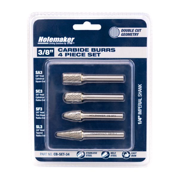 HOLEMAKER CARBIDE BURR SET, BLISTER PACK, 4PCE SA3, SC3, SF3, SL3