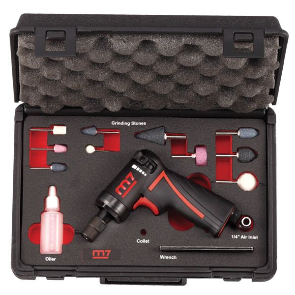 M7 MINI AIR DIE GRINDER 12 PIECE KIT, PISTOL STYLE, 1/4", 18,000 RPM