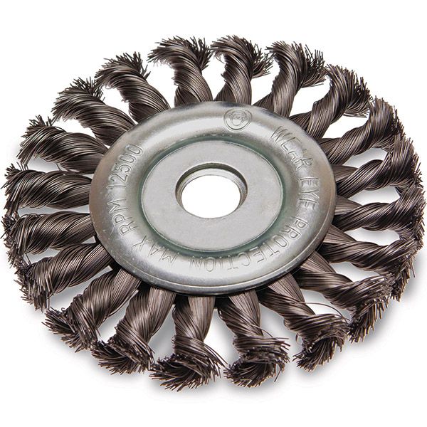 ITM TWIST KNOT WHEEL BRUSH STAINLESS STEEL 125MM, 22.2MM BORE WITH 5/8" & 1/2" ADAPTORS