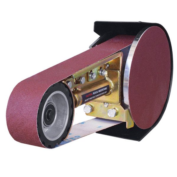 - VERSATILITY - Grinding, sanding or polishing in 4 positions on rubber contact wheel, platen, disc or free strapping. The unit can also be swivelled vertically or any position in between.