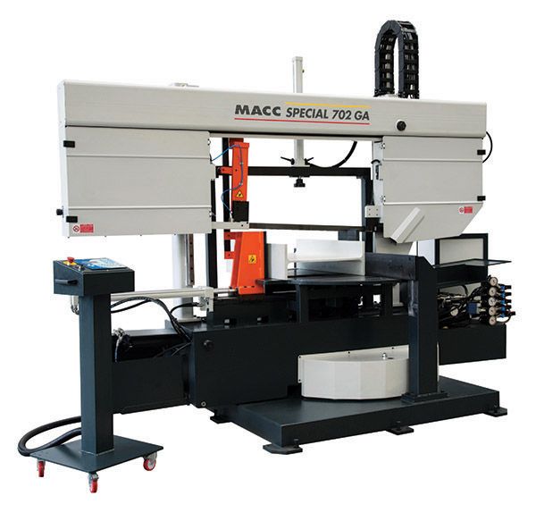 MACC DUAL COLUMN BANDSAW, SEMI AUTO, 550 x 700MM CAP, POWERED SWIVEL HEAD, DUAL MITRE, VARIABLE SPEED 415V 3PH
