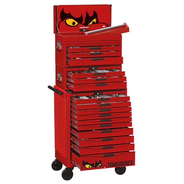 - Supplied in a red TengTools 26" 19 drawer stack system with a top box, middle box and roller cabinet with the distinctive TengTools eyes logo on the drop front of the top box